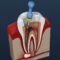 A small opening is created in the crown of the tooth to access the inner root canals.